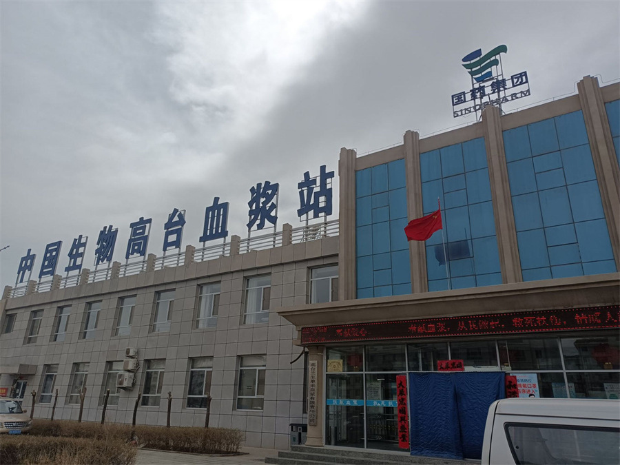 始終堅持“關愛生命,呵護健康”企業(yè)理念,緊抓“三化管理”, 建設“三型漿站”,發(fā)揮漿站“四個點”作用中國生物高臺血漿站,隸屬于國務院國資委直接管理的中央企業(yè)--中國醫(yī)藥集團有限公司,于2013年獲得甘肅省衛(wèi)生健康行政部門批準,由國藥集團蘭州生物制藥有限公司設置,2016 年1月獲得《單采血漿許可證》執(zhí)業(yè)采漿。血漿站位于甘肅省張掖市高臺縣巷正路69號,采漿區(qū)域為:高臺縣、臨澤縣、肅南裕固族自治縣(不含皇城鎮(zhèn))、甘州區(qū)(不含花寨鄉(xiāng)及安陽鄉(xiāng))、酒泉市、嘉峪關市。