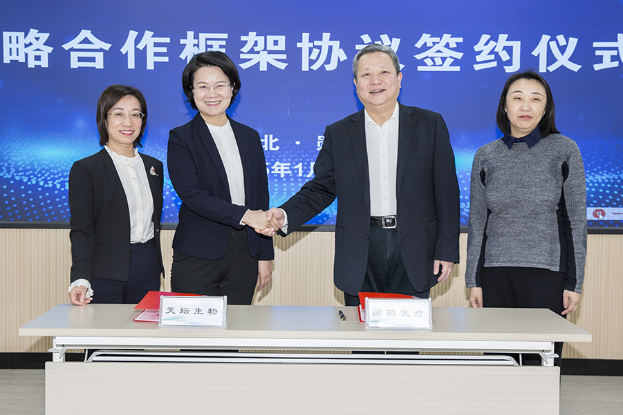 1月18日,天壇生物與國藥醫(yī)療在十堰市鄖陽區(qū)單采血漿站簽署戰(zhàn)略合作框架協(xié)議。國藥醫(yī)療董事長、黨委書記陳映龍,天壇生物黨委書記劉亞娜,鄖陽區(qū)副區(qū)長王俊,鄖陽區(qū)衛(wèi)生健康局黨組書記王光勇出席簽約儀式。陳映龍、劉亞娜共同為“血液健康管理中心”揭牌。