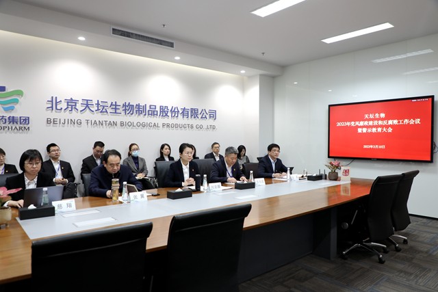 會議傳達學習了國資委、國藥集團、中國生物黨委黨風廉政建設(shè)和反腐敗工作會議精神,總結(jié)了2022年天壇生物全面從嚴治黨工作情況,對2023年推進黨風廉政建設(shè)和反腐敗工作提出要求。