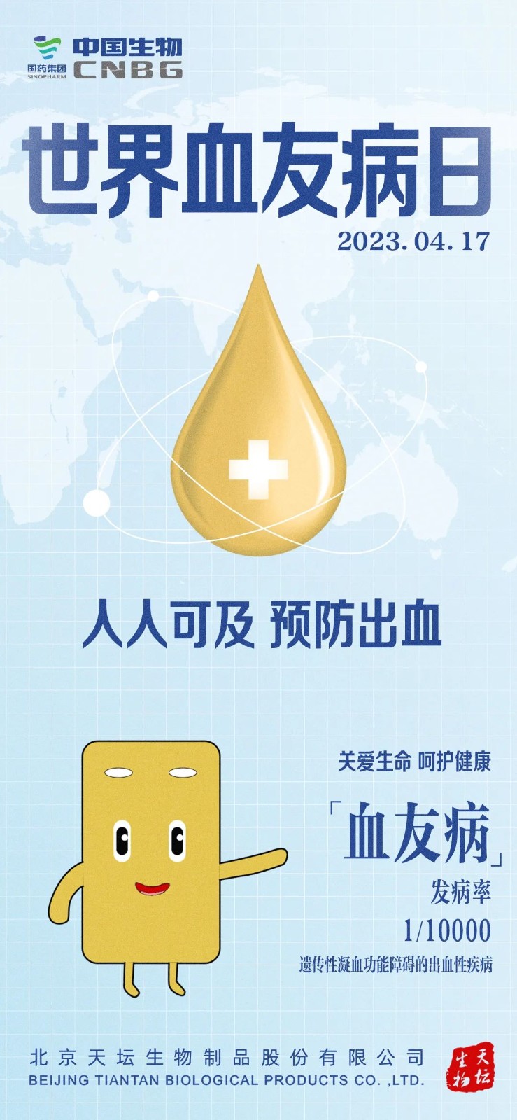 1989年世界血友病聯(lián)盟將每年4月17日設(shè)定為“世界血友病日”,旨在喚起全社會(huì)對(duì)血友病的認(rèn)知和關(guān)注,并積極為血友病患者提供支持和幫助,今年4月17日是第35個(gè)“世界血友病日“,讓我們一起來(lái)了解血友病,關(guān)愛(ài)“玻璃人”。