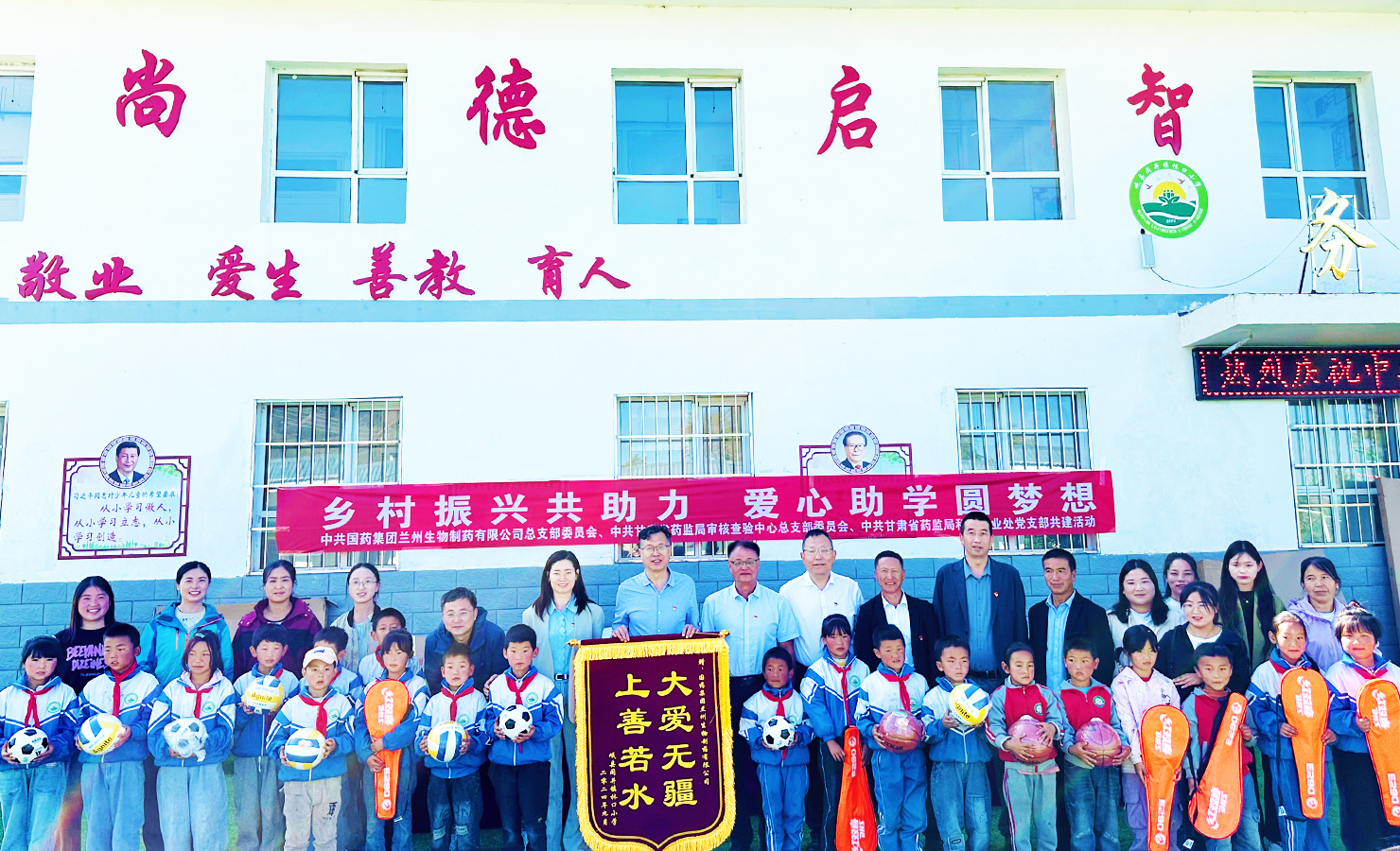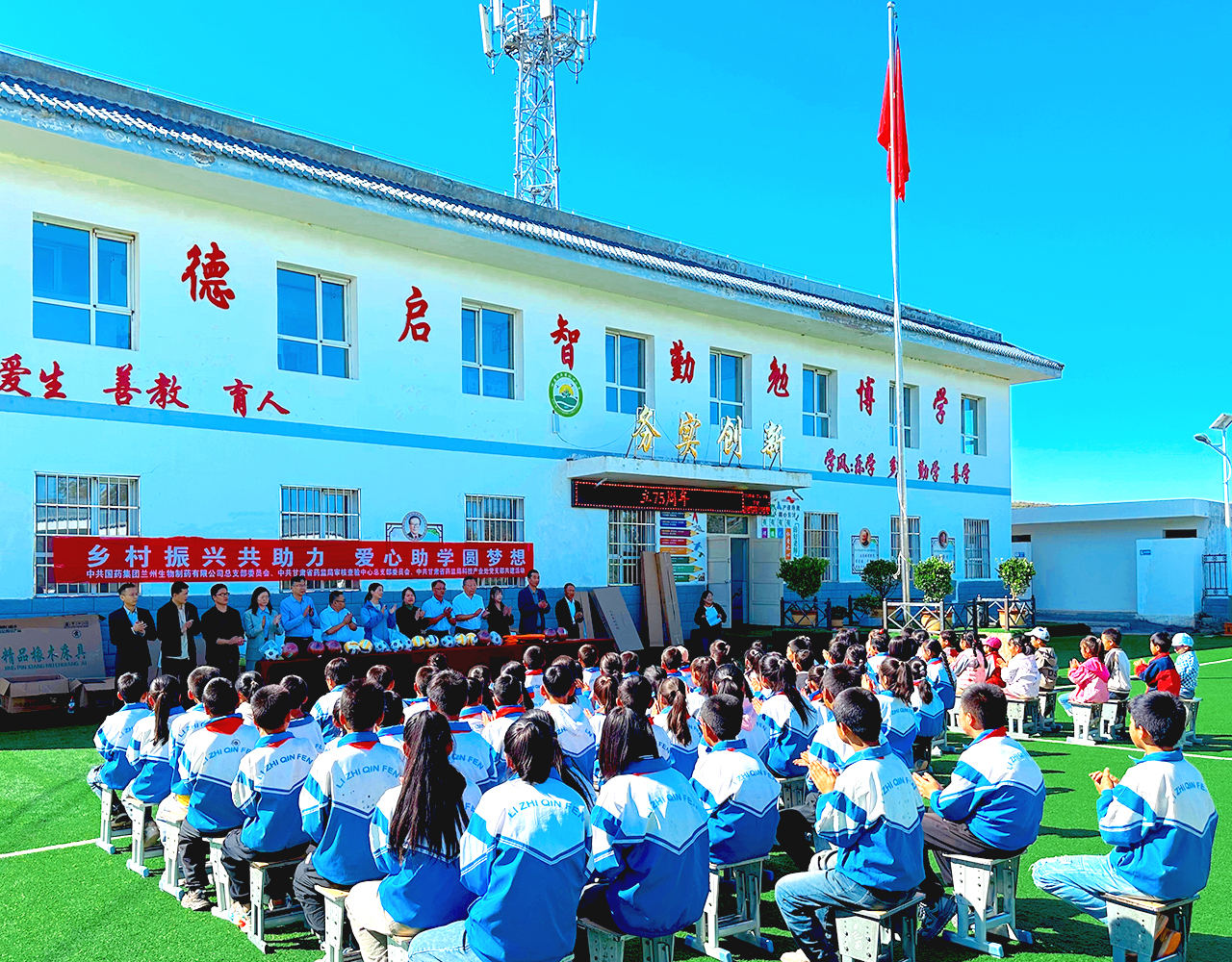 秋風(fēng)送爽,愛心滿溢。9月24日,蘭州生物制藥黨總支與甘肅省藥監(jiān)局審核查驗(yàn)中心黨總支、甘肅省藥監(jiān)局科技產(chǎn)業(yè)處黨支部、定西白銀地區(qū)漿站聯(lián)合黨支部共同開展愛心助學(xué)捐贈(zèng)暨支部共建活動(dòng),向定西市岷縣閭井鎮(zhèn)林口村小學(xué)捐贈(zèng)書柜、課桌、籃球等辦公用具和體育用品,物資折合共計(jì)4.5萬元。本次活動(dòng),林口村委會(huì)黨員領(lǐng)導(dǎo)干部、校領(lǐng)導(dǎo)、學(xué)生共百余人現(xiàn)場(chǎng)參加。